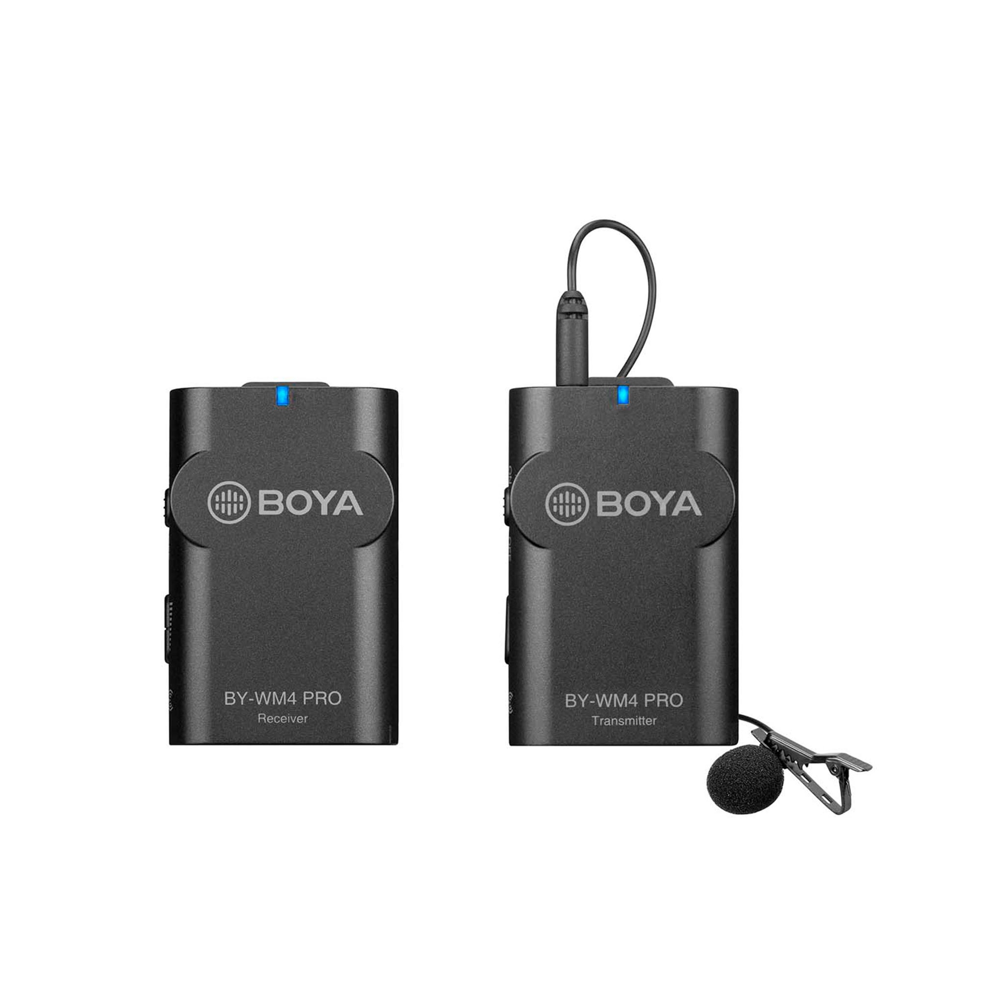 Con el micrófono inalámbrico de solapa BOYA BY-WM4 PRO K1 tendrás a disposición un transmisor y un receptor en frecuencia digital de 2.4 GHz, además de una solapa omnidireccional y los distintos accesorios para su uso en el campo del video.