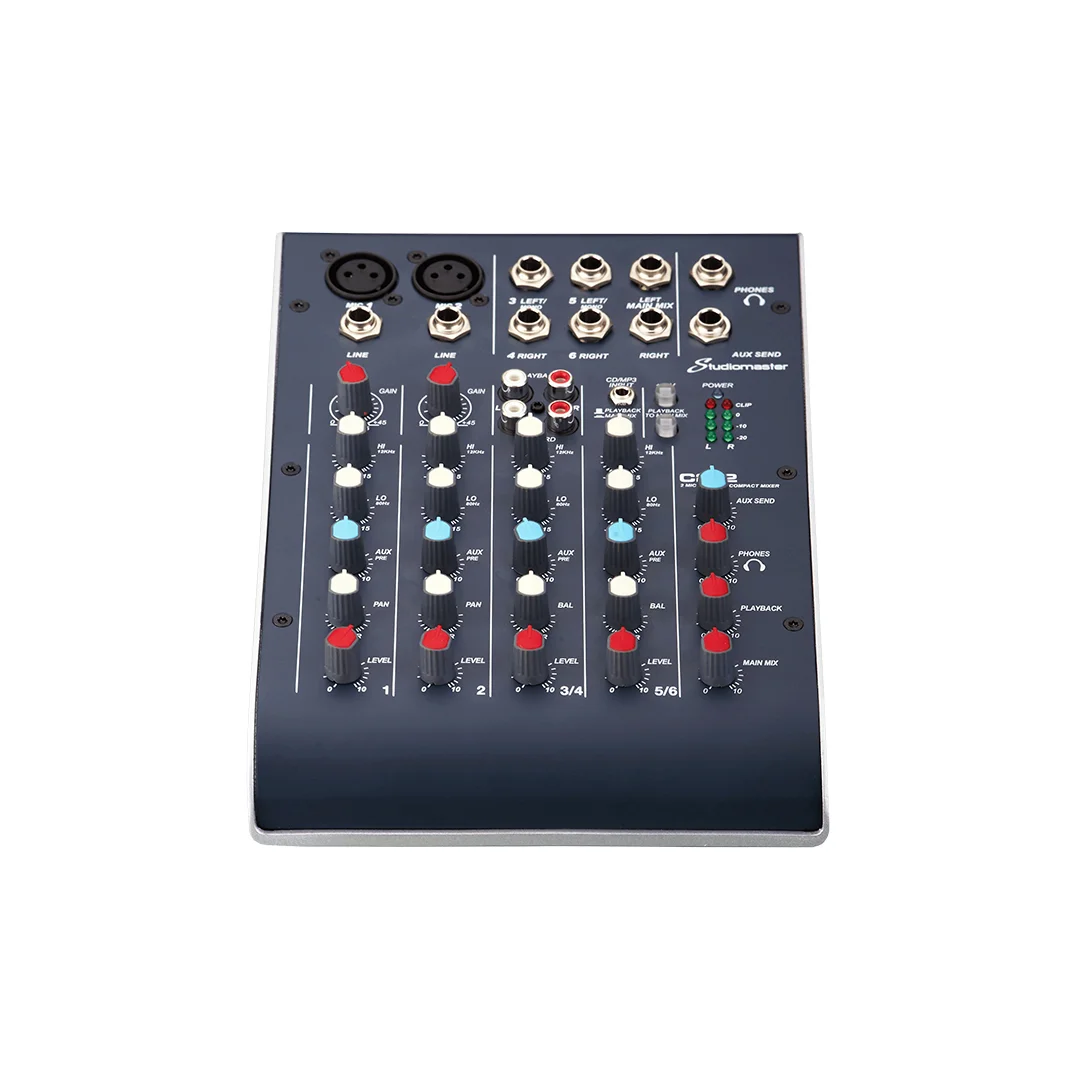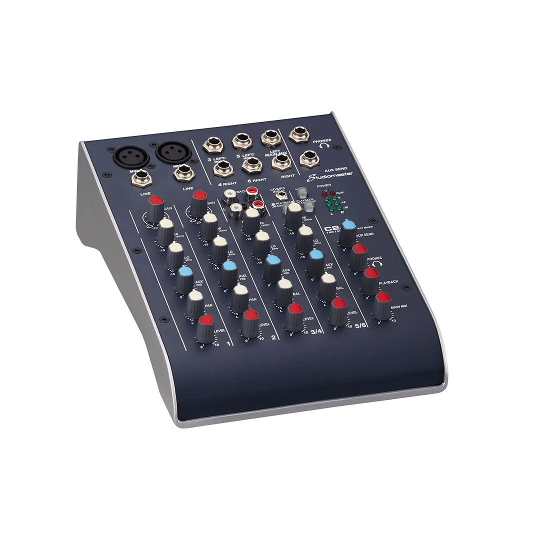 Todas las unidades cuentan con ecualizador de 2 bandas en todos los canales, auxiliar para procesadores de efectos externos, control de panorama/balance y controles de ganancia y nivel de entrada. La sección de salida es igualmente completa, con salida estéreo en jacks de 6,3 mm, reproducción/grabación tanto en phono RCA como USB (en los modelos C2S), medidor de barras y salida de auriculares.