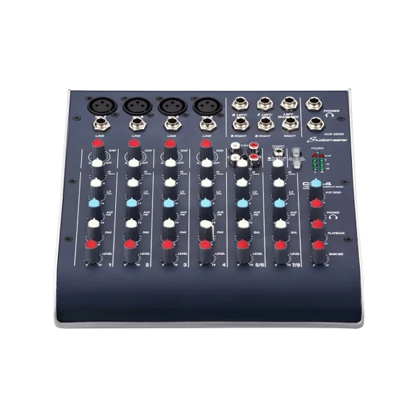 Todas las unidades cuentan con ecualizador de 2 bandas en todos los canales, auxiliar para procesadores de efectos externos, control de panorama/balance y controles de ganancia y nivel de entrada. La sección de salida es igualmente completa, con salida estéreo en jacks de 6,3 mm, reproducción/grabación tanto en phono RCA como USB (en los modelos C2S), medidor de barras y salida de auriculares.