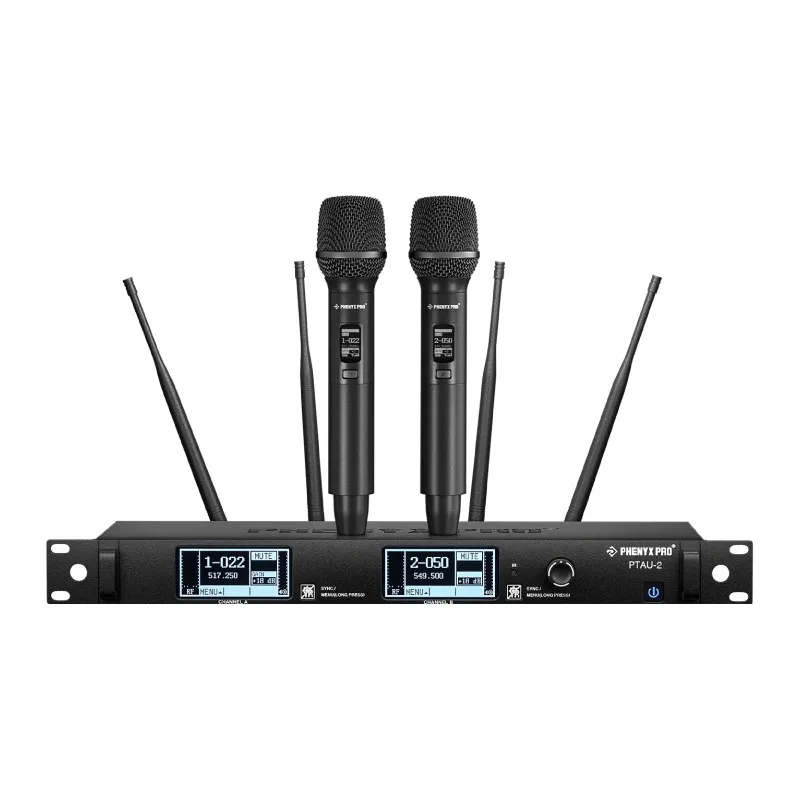Sistema de micrfono dinmico inalmbrico dedoble canal con diversidad real avanzadaNavegue por configuraciones de RF complejas paraobtener audio sin prdidas con un toque especial Descubra un control sin esfuerzo con el avanzado sistema de micrfono inalmbrico True Diversity PTAU-2. El innovador dial giratorio de desplazamiento simplifica las configuraciones complejas y ofrece un acceso fluido e intuitivo a todas las funciones. Diseado para entornos exigentes, garantiza un rendimiento estable y sin interferencias. Desde eventos dinmicos al aire libre hasta espacios amplios, el PTAU-2 garantiza un sonido ntido y consistente sin concesiones.