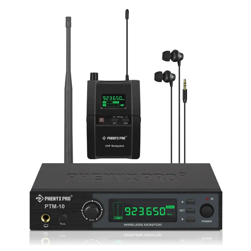 Sistema de monitor intrauditivo inalmbrico estreoUHFEl PTM-10 surge como el compaero de escenarioideal para los entusiastas de la msica ms exigentes y los intrpretes profesionales. Proporciona una experiencia inmersiva de monitoreo de sonido estreo para que pueda escuchar la diferencia. Con mltiples funciones personalizables, le permite ajustar la mezcla de su monitor y controlar el sonido. Experiencia de monitoreo estreo inmersiva con hasta un 93% de separacin de sonido para escuchar la diferencia.Rendimiento de sonido excepcional, puro, sin distorsiones y sin latencia.El botn PAD reduce la ganancia de entrada para evitar que las fuentes de entrada ruidosas sobrecarguen y recorten el preamplificador.El potente receptor presenta mltiples funcionesprcticas, que incluyen seleccin estreo mono