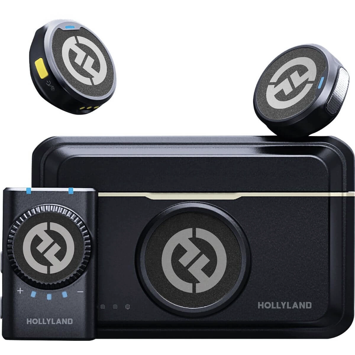 Con el Hollyland LARK M2 Camera-Mount , 2,4 GHz en color carbón brillante, grabe hasta dos personas en aplicaciones de periodismo móvil o creación de contenido. El sistema incluye dos transmisores con micrófonos omnidireccionales integrados y malla de interfaz dual, un receptor de montaje en cámara de dos canales y un estuche de carga.
